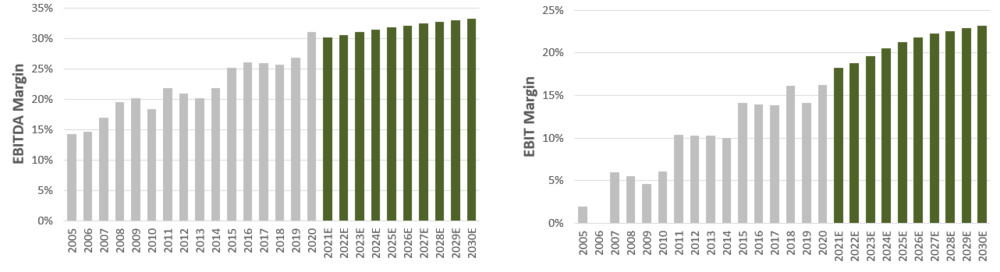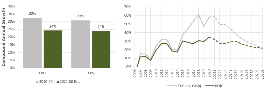 Exhibit O shows that my forecast for EV/Sales versus average deal size is consistent with the historical relationship between these two variables, if not slightly conservative. By 2030, I estimate that incremental ROIC is somewhere in the mid-to-high teens.