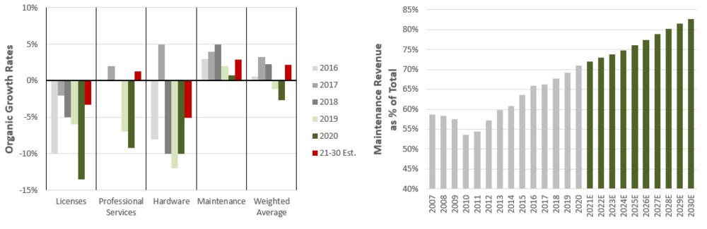 I believe that the switch from licenses to SaaS products has understated historical growth, and that this should normalize over the next decade.