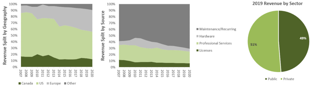 Finally, up until 2020 CSU reported revenue from the public and private sector, but those headline figures require some adjustments for reasons not worth getting into here. The headline figures show that 67% of 2019 revenue came from the public sector, and that the public/private split has been roughly constant over time. In reality, public sector customers generated just 49% of 2019 revenue, which is down notably from 57% in 2017. The reason I highlight this will become apparent later.